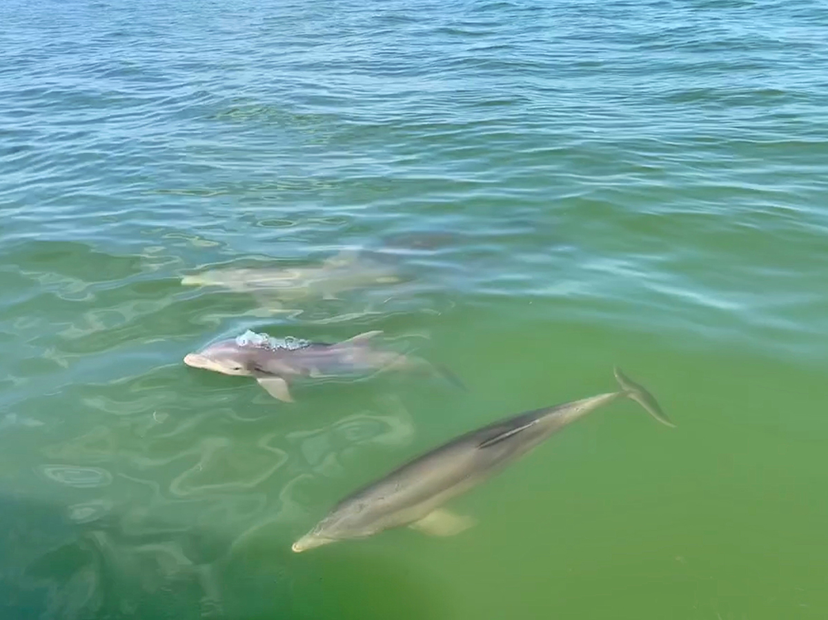 • Dolphins playing with the boat wake
